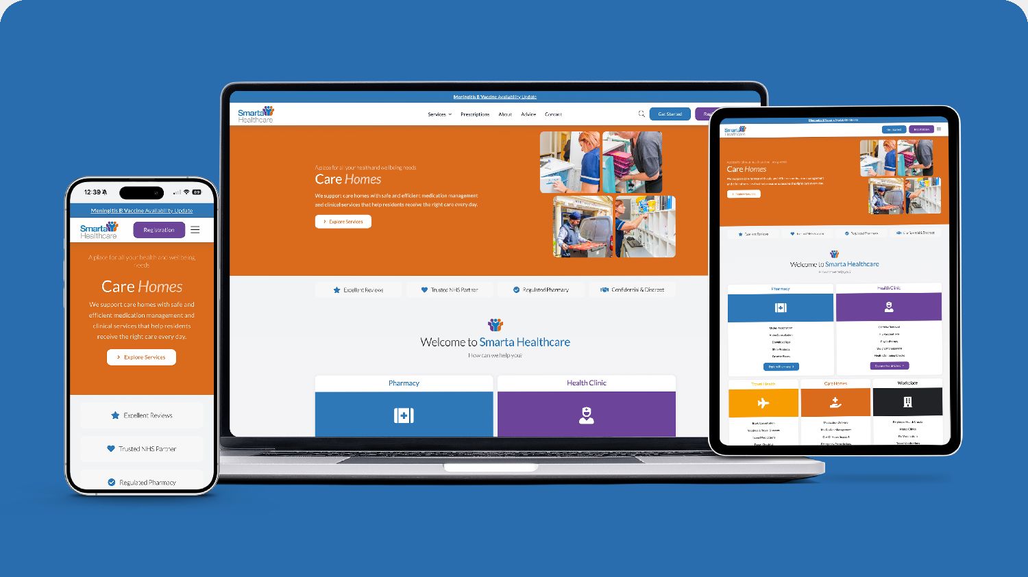 Smarta’s previous website had served the business well during its early years, but the company had outgrown it. As the team prepared to push harder into care home contracts, workplace health and travel clinic services, the existing site was actively getting in the way.